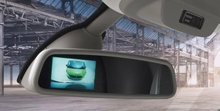 Atpakaļskata kamera ar integrētu displeju iekšējā atpakaļskata spogulī. Komplektā ietilpst kamera, iekšējais atpakaļskata spogulis ar integrētu displeju, vadi.