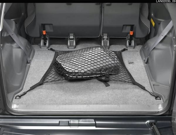 Bagāžnieka kravas stiprināšanas siets, izmēri 320x200x20 mm, Toyota LandCruiser 150, 2009/08 -> - der tikai ja a) 7 vietīgs auto, 3 rinda nolokāma; b) 3 durvju auto - otrā rinda nolokāma.