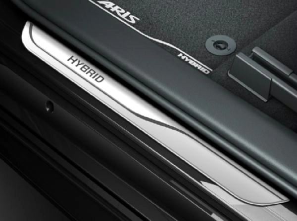 Komplekts priekšējām durvīm. Aluminium scuff plate, hybrid, silver & black. Yaris Cross [2021/07(FMC)], 1.5L Hybrid (M15A-FXE)