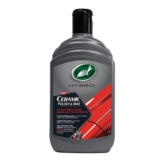 HYBRID SOLUTIONS CERAMIC POLISH & WAX Unikāla krāsas korekcija un aizsardzība vienā solī. Viss vienā! Sniedz trīs augstākās klases produktu īpašības – pulēšanu, vaskošanu un keramisku pārklājumu vienā solī. Precīzā pulējošo piedevu tehnoloģija izlīdzina nelielus skrāpējumus un krāsas defektus vieglai krāsojuma atjaunošanai. Hidrofobais SiO2 keramiskais pārklājums nodrošina neticamu ūdens atgrūšanu, ķīmisko aizsardzību un pārsteidzošu spīdumu. Lietošana: Nomazgājiet auto virsbūvi un ļaujiet tai nožūt. Labi sakratiet iepakojumu. Neuzklājiet uz karstas virsmas. Labākam rezultātam nelietojiet pārlieku daudz produkta – rekomendētais daudzums aptuveni 60ml uz automašīnu. Uzklāšana ar roku: Uzpiliniet trīs nelielas lāses produkta uz sūklīša un uzklājiet uz aptuveni 50x50cm laukuma ar vieglu līdz vidēju spiedienu un apļveida kustībām. Lieko produktu noslaukiet ar mikrošķiedras lupatiņu, pārslaukot ar tās tīro pusi. Ar mitru mikrošķiedras drānu aktivizējiet spīduma polimērus un vēlreiz pārslaukiet ar sausu lupatiņu. Tādā pat veidā turpiniet apstrādāt visu virsbūvi. Uzklāšana ar iekārtu: Uzpiliniet 4 lāses produkta uz vidēja izmēra pulēšanas ripas un uzklājiet uz aptuveni 50x50cm laukuma ar lēnu rotācijas ātrumu. Pēc tam pārslēdziet iekārtu vēlamajā pulēšanas režīmā un ar vieglu līdz vidēju spiedienu un savstarpēji perpendikulārām kustībām, vispirms no augšas uz leju un pēc tam no vienas puses uz otru, iestrādājiet virsmā. LEITOJIET PULIERA VEIDAM ATBILSTOŠU RIPU UN IESTRĀDES ĀTRUMU. Lieko produktu noslaukiet ar mikrošķiedras lupatiņu, Pārslaukot ar tās tīro pusi. Ar mitru mikrošķiedras drānu aktivizējiet spīduma polimērus un vēlreiz pārslaukiet ar sausu lupatiņu. Tādā pat veidā turpiniet apstrādāt visu virsbūvi. Piezīme: Pirms lietošanas pārliecinieties par produkta saderību mazāk redzamā vietā. Nelietot uz gumijas, vinila vai matētām virsmām. Nemazgājiet un neveiciet papildus aizsarglīdzekļus 24 stundas.